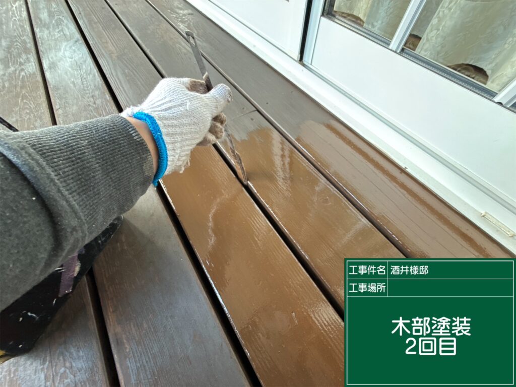 塗装をすることで木材内部への水の浸入を防ぎます。水分が浸入すると腐食の原因になります。
