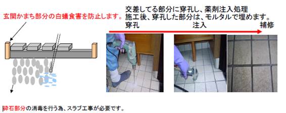 シロアリについては、築10年経過で一度防蟻対策をしておくとよいですね。防蟻対策は弊社では以下のような施工をしております。