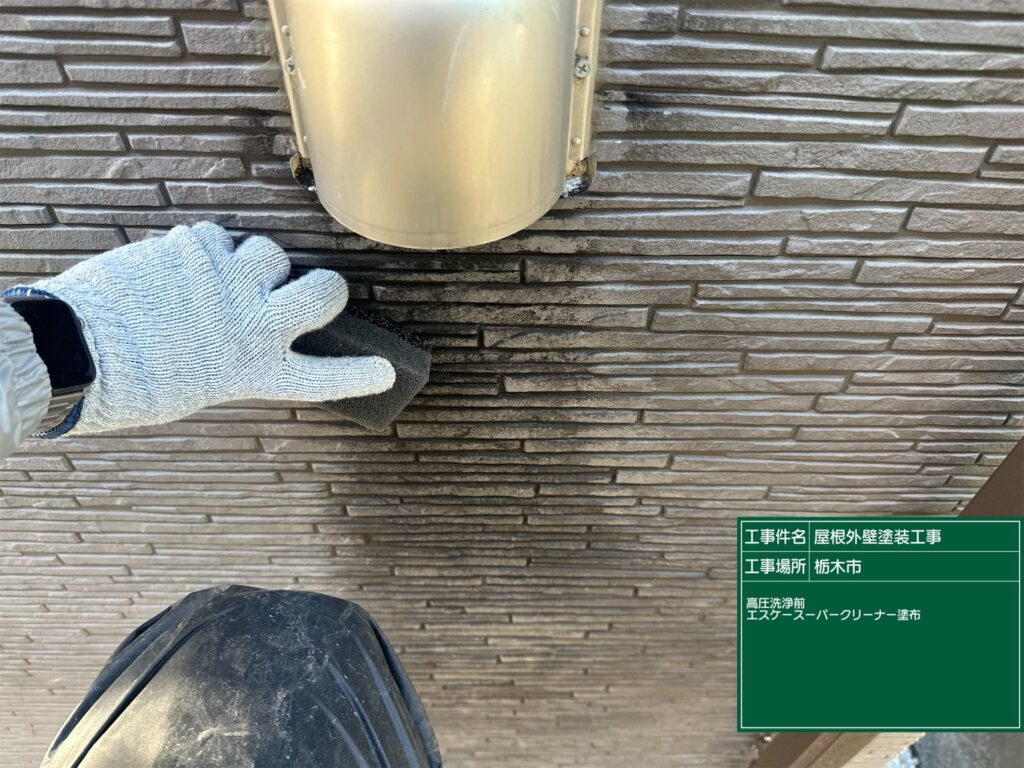 専用機材を使用し、外壁表面に均一に洗浄剤を塗布します。