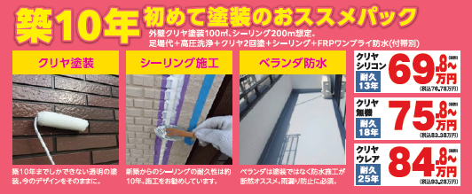 ■築10年の初めての外壁塗装パックプラン