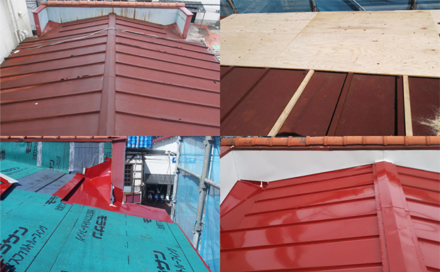 棟瓦の積み替え、棟部板金の交換ができます。