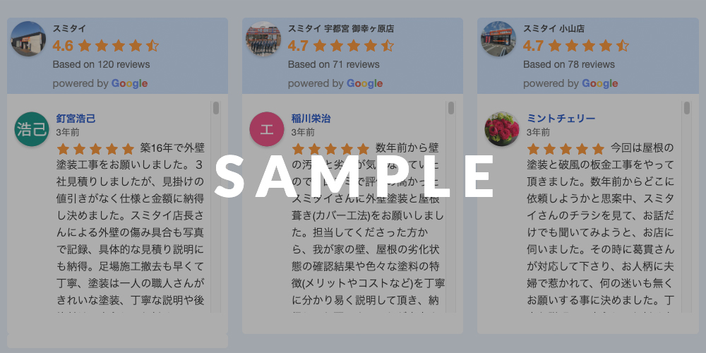 お客様と弊社の直接取引なので、中間マージンが一切かかることがありません。また弊社では販促費用を最小限にしております。営業スタッフも最小限です。一般的に販促費や人件費は施工価格に上乗せされます。弊社では最小限の販促費用、人件費用の余計な費用をかけていない分、本の意味でのダイレクト価格で本物の施工をご提供します。