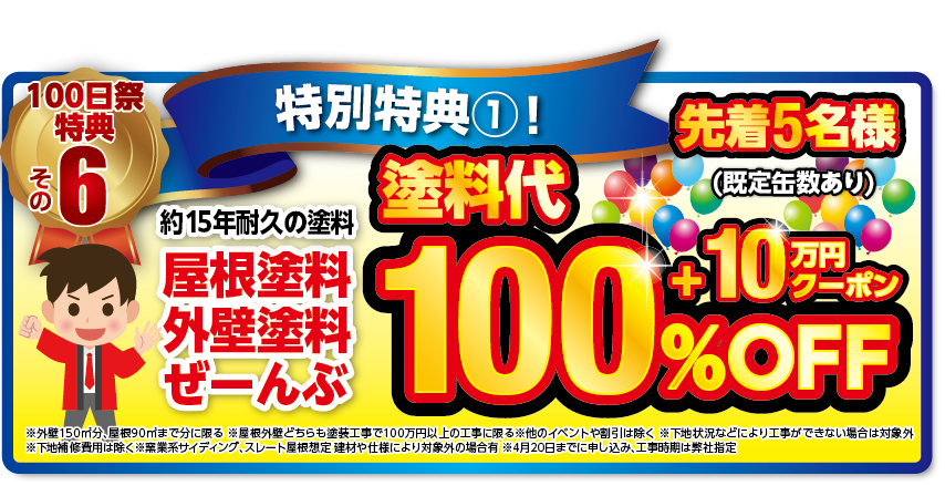 そして、BIGなプレゼント!100日祭に合わせて10万円オフクーポンをお付けします!!先着10名様に限ります!!!