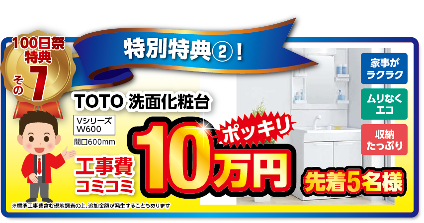 当社は水回りも専門です!TOTOの洗面化粧台が何と10万円ポッキリ価格です!こちらは先着5名様に限ります!! ※対象外となる諸注意はよくお読みください。