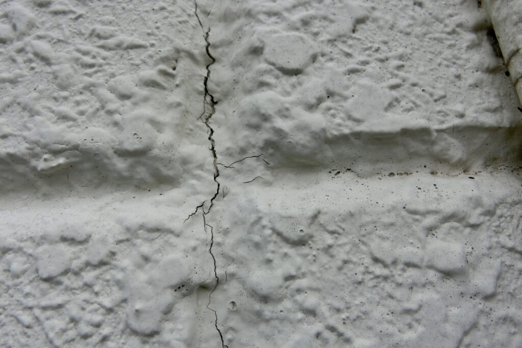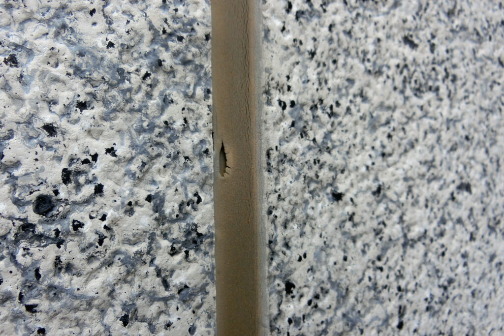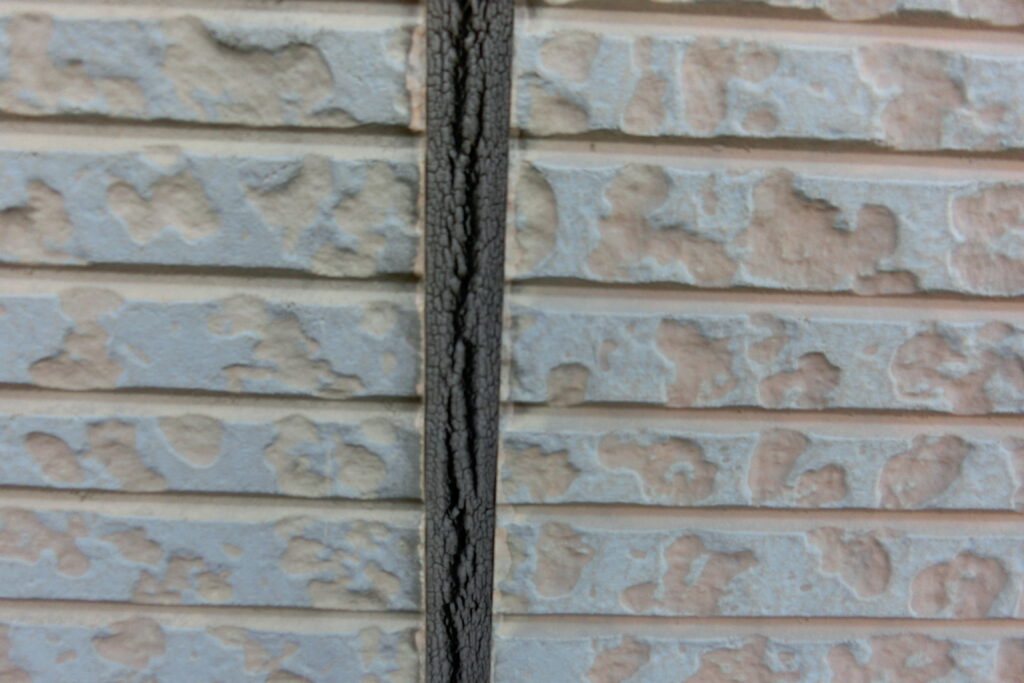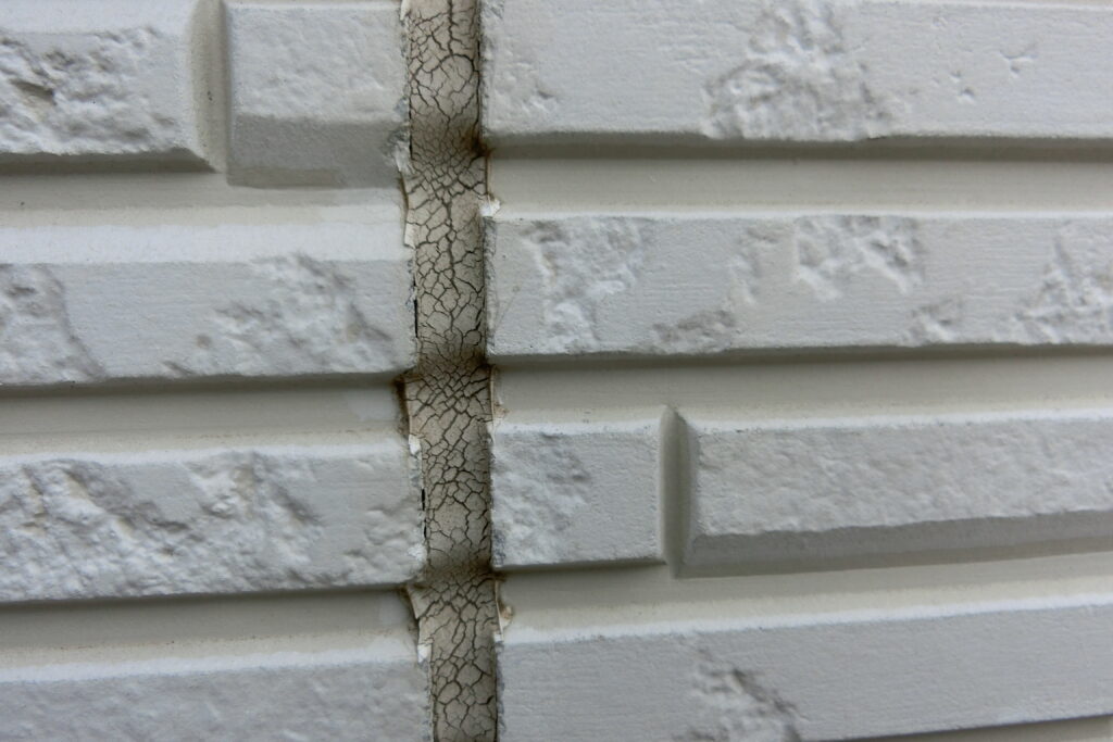 シーリングが裂けてしまい、外壁の内部が見えている状態です。ここまで進むと、雨水が直接侵入している可能性が高いです。